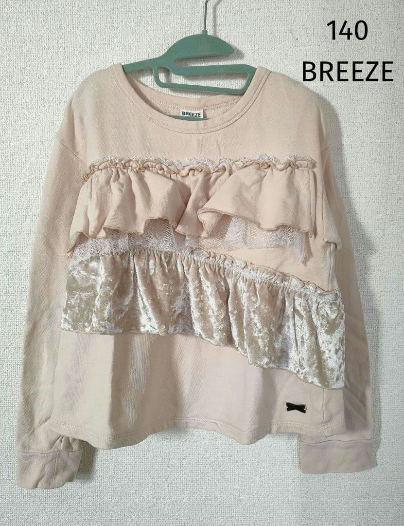 140 BREEZE 裏起毛フリル付トレーナー ミルクベージュ チュール ベロア