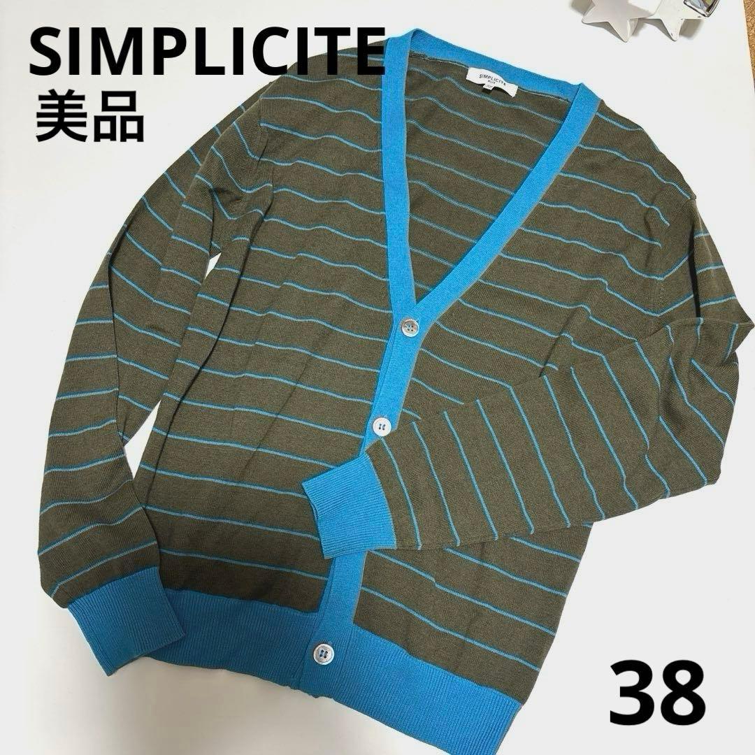 【美品】SIMPLICITE ボーダーカーディガン 38 綿&ウール