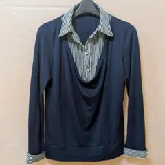 Ventviolet ストライプ柄 長袖ポロシャツ ドレープネック Mサイズ