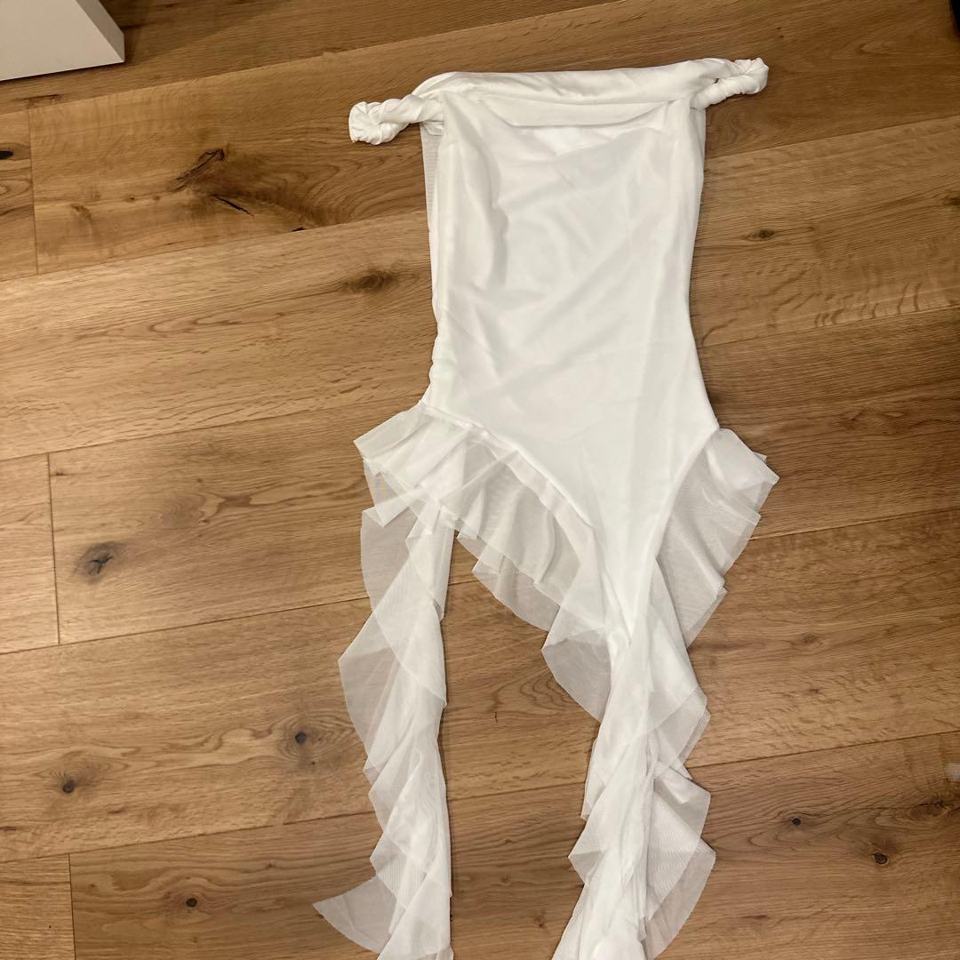 ホワイト フリル ノースリーブ トップス