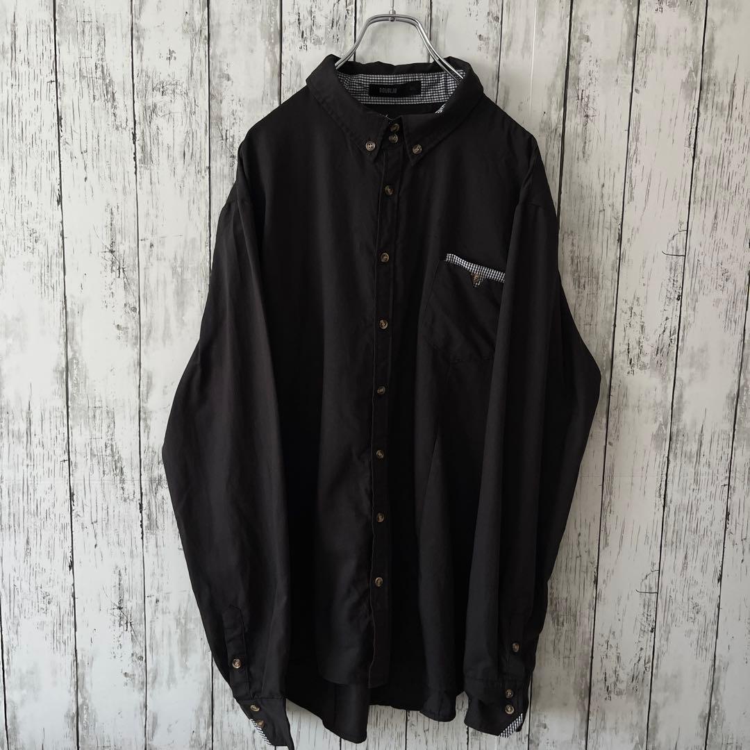 C2538 DOUBLJU 長袖シャツ コットン 2XLブラック 海外古着
