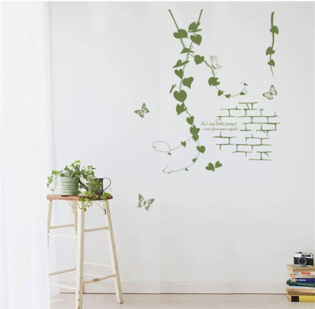 ウォールステッカー グリーン 蝶々 木 壁紙 植物 自然 欧風 インテリア