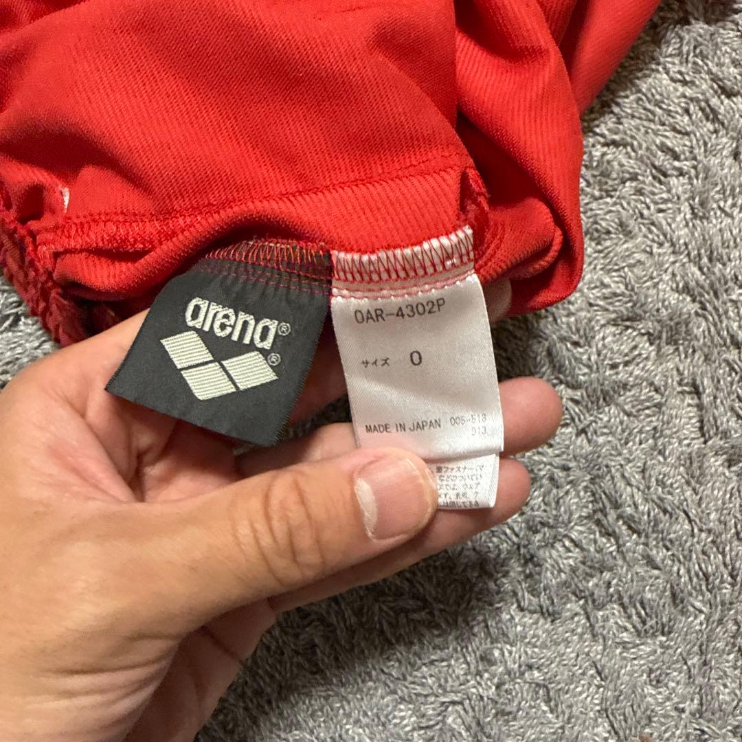 日本国旗付きの赤いarena水着、サイドに黒のアクセントが特徴。 - ブランド: arena - サイズ: 0 - 色: 赤 - デザイン: 日本国旗付き - 特徴: サイドに黒のアクセント ご覧いただきありがとうございます。