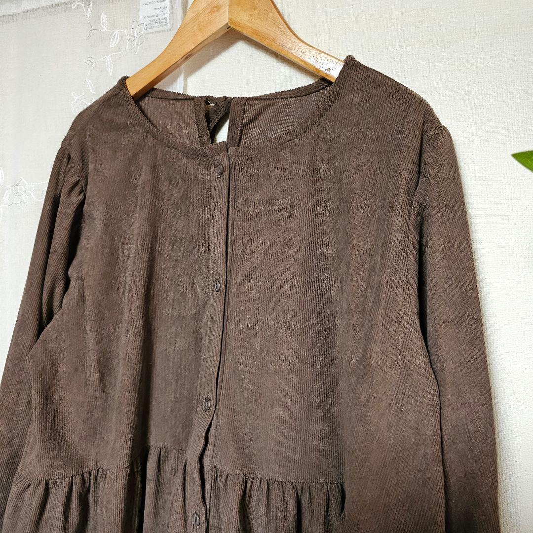 MUMU&Co ブラウス チュニック コーデュロイ ギャザー LL ブラウン
