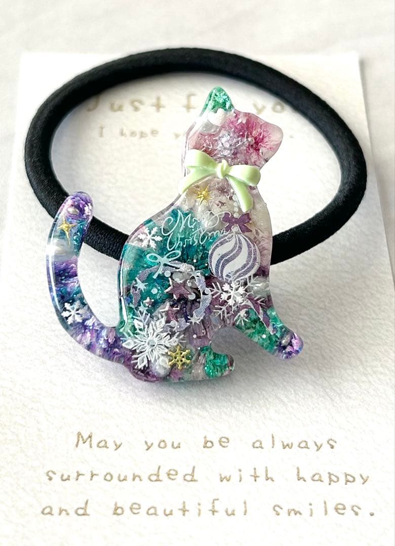 レジン*ねこちゃん Xmas フラワー ヘアゴム✧˚₊‧ꕥ