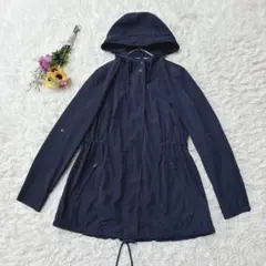 良品*MNG マンゴ モッズコート フード付き ナイロン素材 紺 EUR・S