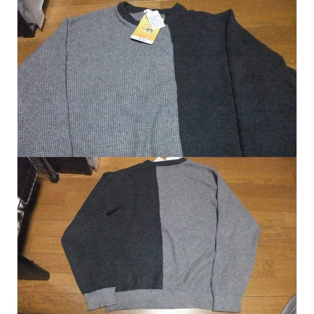 セーター ニット バイカラー 3L グレー ダークネイビー系 2XL クレイジーカラー XXL クレイジーパターン 自宅収納袋保管新品タグ付属ありです。【サイズ】3L(着丈67cm/身幅62cm/袖丈63cm)