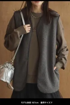 【タグ付き未使用】 グリーンパークス ボアベスト チャコールグレー