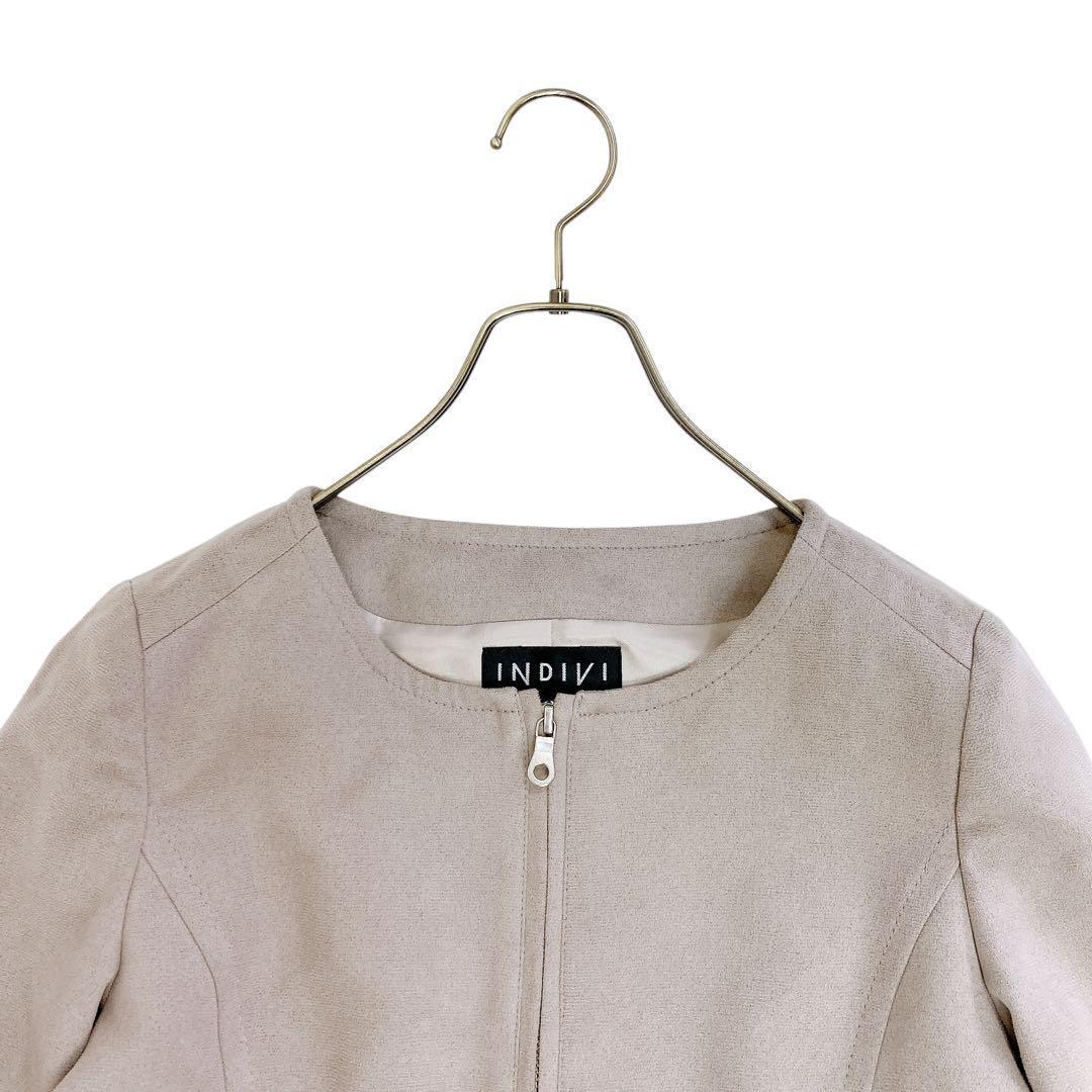 11T355☆ INDIVI スウェード調 ノーカラージャケット ライトアウター
