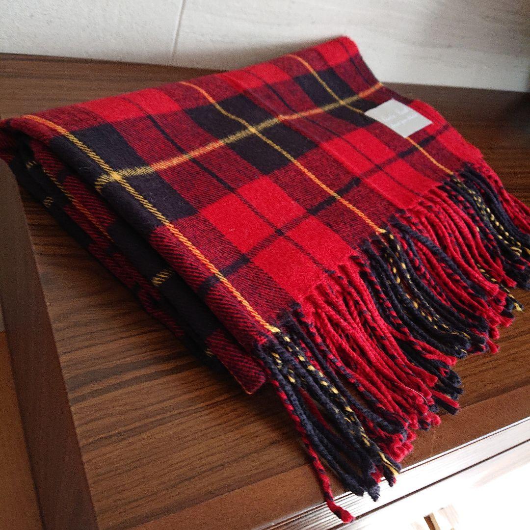 【未使用】マフラー 大判ストール チェック 赤 レッド ボルドー