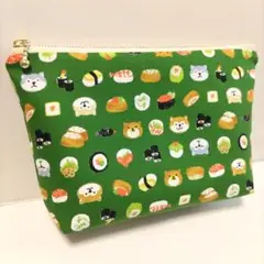 おすしば 柴犬 寿司 ハンドメイド ポーチ コスメポーチ ファスナーポーチ 豆柴