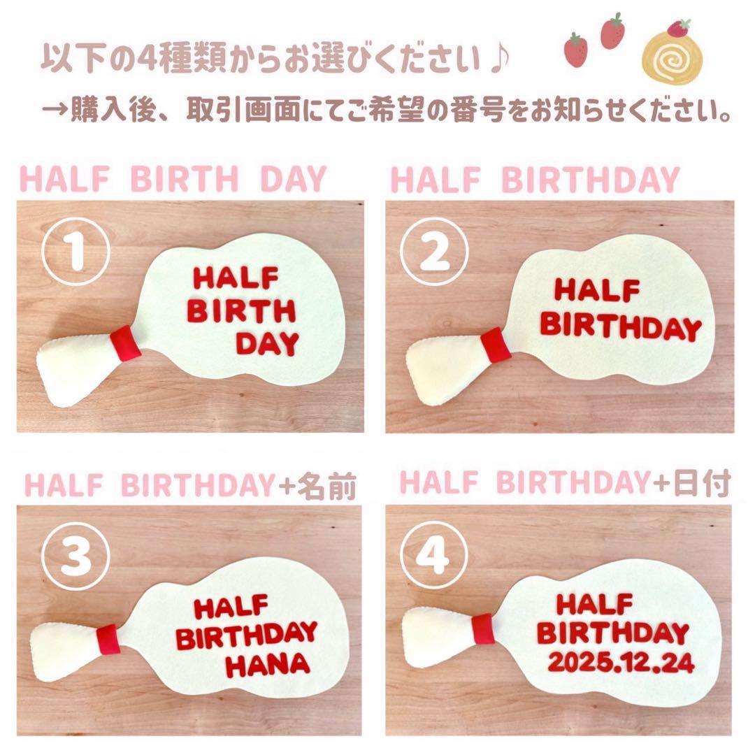 (HALF BIRTHDAYの文字下にお名前or日付を入れることが出来ます)