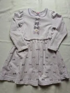 メゾピアノ 薄紫のリボンデザイン長袖ワンピース 140cm
