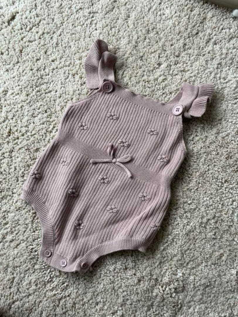 バースデイ 刺繍花柄 ニットロンパース