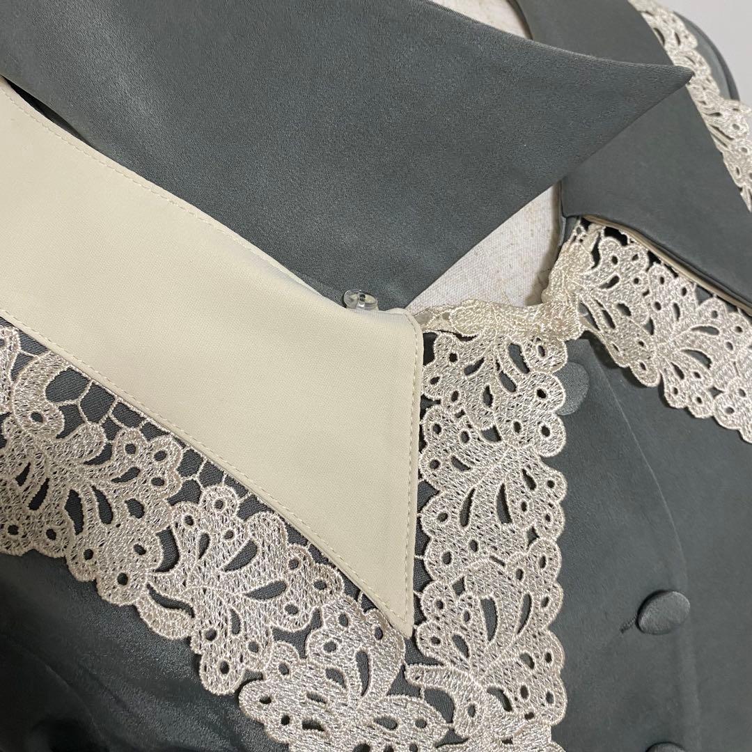 F i.n.t an3 カットワークダブル襟ワンピース グリーン フィント 長袖