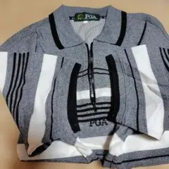 PGA ジップアップポロシャツ グレー/ホワイト/ブラック