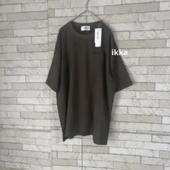 ikka イッカ ストライプ Tシャツ カットソー カーキ 透け感 クルーネック