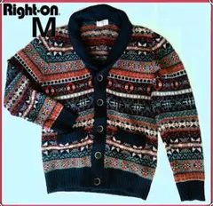 ノルディック柄ニット カーディガンRight-onM毛80%★風を通さず暖かい★