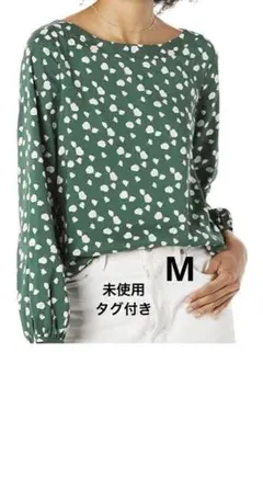 Amazon essentials 花柄ブラウス ボートネック M タグ付き