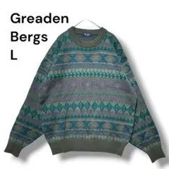 Greaden Bergs ニット セーター 長袖 日本製 L 総柄 緑 紫