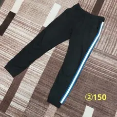 ②150 黒 ストレッチパンツ 青いストライプ