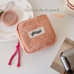 キルティング チェック ポーチ オレンジ マルチケース チェック柄
