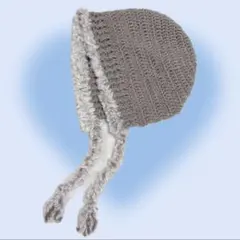 ボンネット バラクラバ クロシェハット ニット帽 y2k 編み物 ブラウン