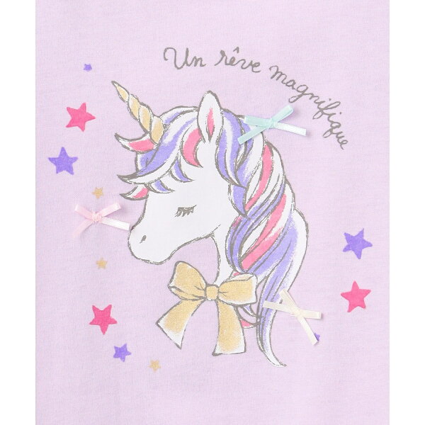 温度で色が変わる、ミラクルプリントTシャツ。プリント部分のカラーが、温まると色が変化するミラクルプリントです♪太陽などの外からの熱や、お子様の体温で、だんだんと色が変わる仕様になっていいます。オフホワイト(#001)はパフェのグラス部分と右上のハート、サックスブルー(#073)はフルーツとリボン、ラベンダー(#082)はユニコーンのたてがみと星の色が変わります。さらに、立体モチーフも付いていて可愛さアップ!素材には接触冷感機能を施しているので、暑い日も快適に着られます。綿100%の素材なので、お子様にも安心して着用頂けます。