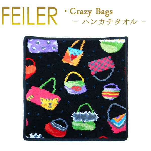 【ネコポス:3枚まで同梱可】フェイラー ハンカチ クレイジーバッグ ブラック CRAZY BAGS 30cm×30cm タオルハンカチ