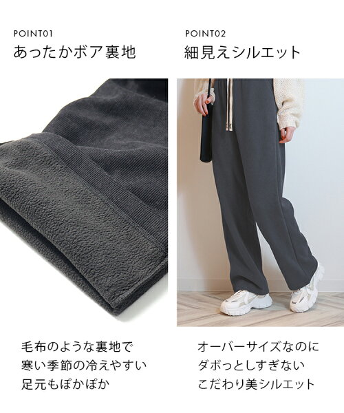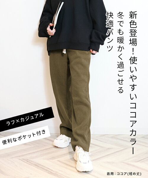 【新春特価1点990円~84%OFFクーポンで】裏起毛 パンツ レディース 秋 冬 ワイドパンツ 裏ボア 暖かい 厚手 ゆったり 体型カバー 脚長 美脚効果 ポケット付き パンツ イージーワイドパンツ 低身長 高身長 暖パン スウェット ウエストゴム M-5L 3丈/6色選べる