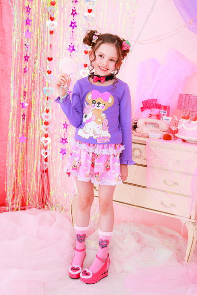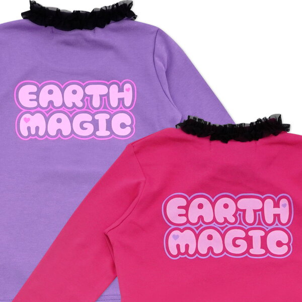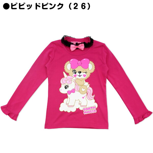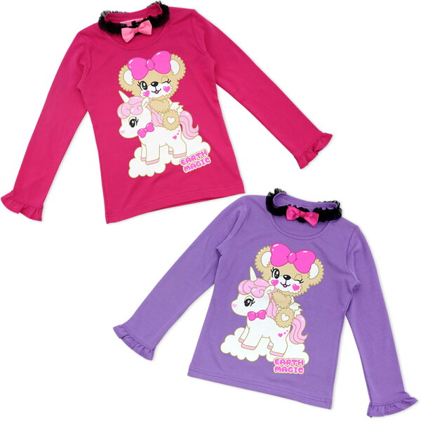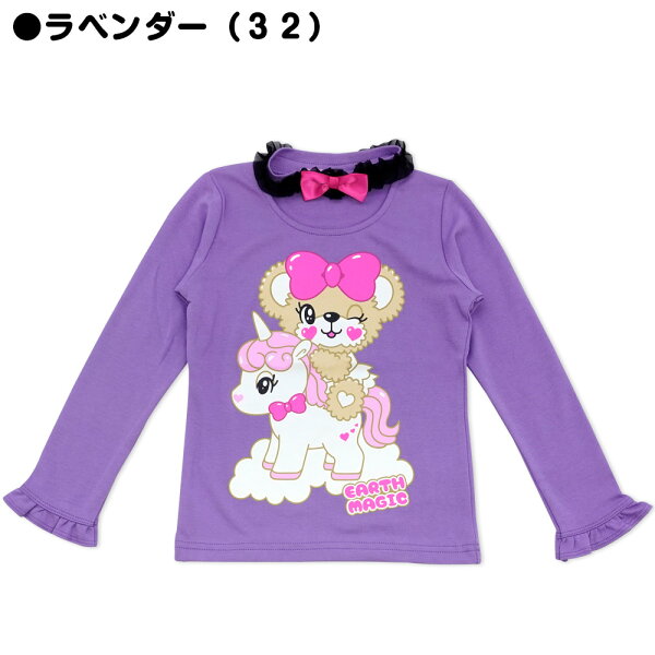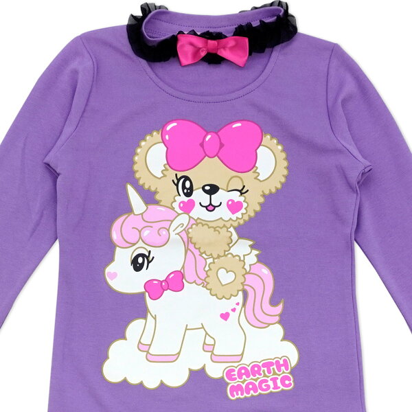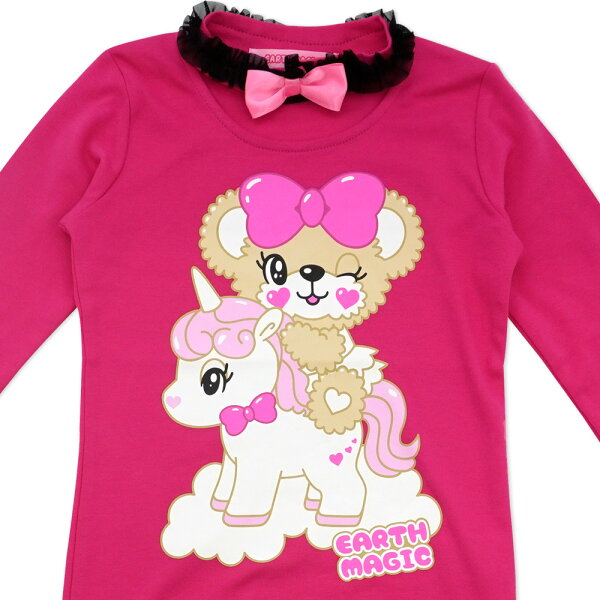 EARTHMAGIC【正規取扱店】アースマジック チョーカー付きマフィー&ユニコーンプリント長袖Tシャツ ピンク ラベンダー 黒チュール 女児 女の子 子供服 キッズ トップス 100cm 【50%OFF】