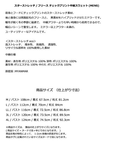 【60%OFF・半額以下・セール・SALE】秋 冬 Callaway GOLF キャロウェイ ゴルフウェア C23217109 スターストレッチ フリース チェックプリント 中綿 スウェット ジャケット ブルゾン [高ストレッチ、防風性] (メンズ)