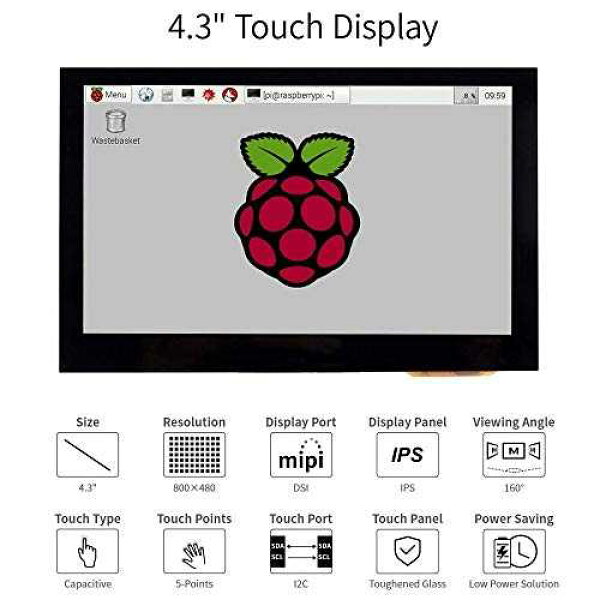 Raspberry Pi LCD 4.3インチ静電容量式タッチディスプレイスクリーンと互換性800×480解像度IPS広角モニターRaspberry Piモジュール4B/3B+/3A+/3B/2B/B+/A+用MIPI DSIインターフェース waveshare Compatible with Raspberry Pi LCD 4.3inch Capacitive Touch
