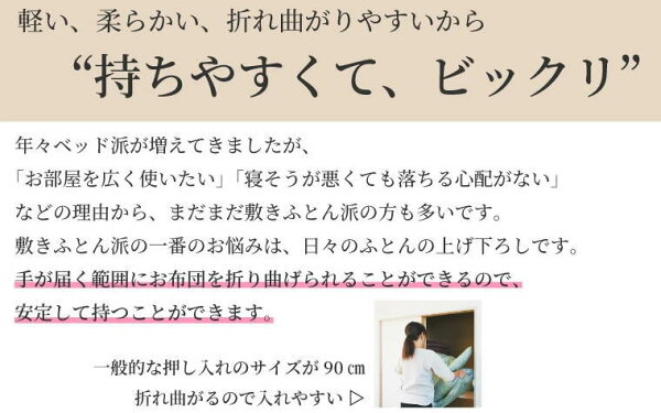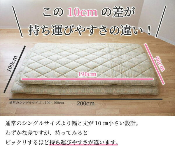 取り扱い らくらく敷布団 持ち運び・収納しやすい 90×190cm 日本製 送料無料 【関連ワード ラクラク敷布団 楽々敷布団 敷きふとん 敷き布団 セミシングル シングル 羊毛 ウール 体圧分散 介護ベッド ボリューム 小さい 七穂 木村綿業】