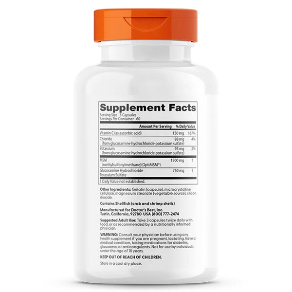 グルコサミン MSM フォーミュラ 180粒 Doctor's BEST(ドクターズベスト) Glucosamine + MSM 180 Caps カプセル メチルサルフォニルメタン OptiMSM オプティMSM ビタミンC シナジスティック 健康サプリメント 栄養補助食品