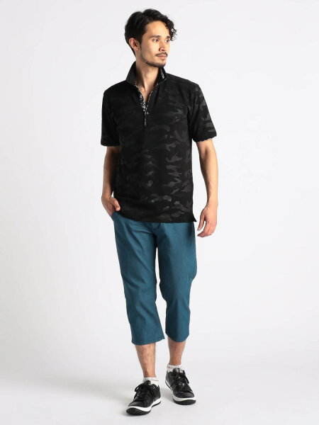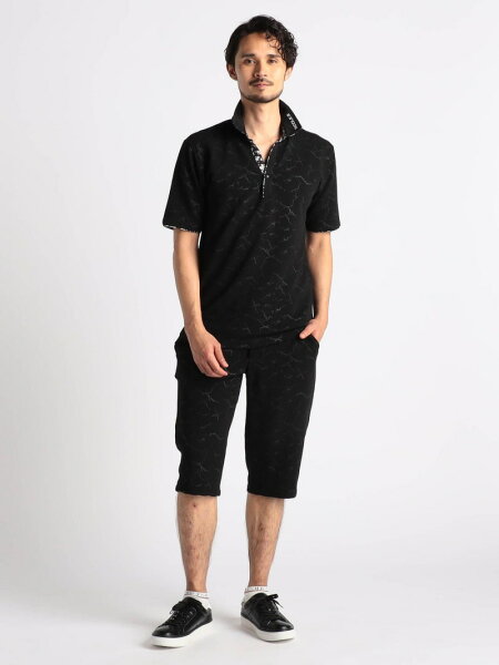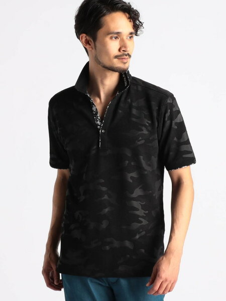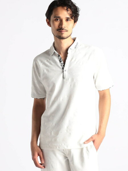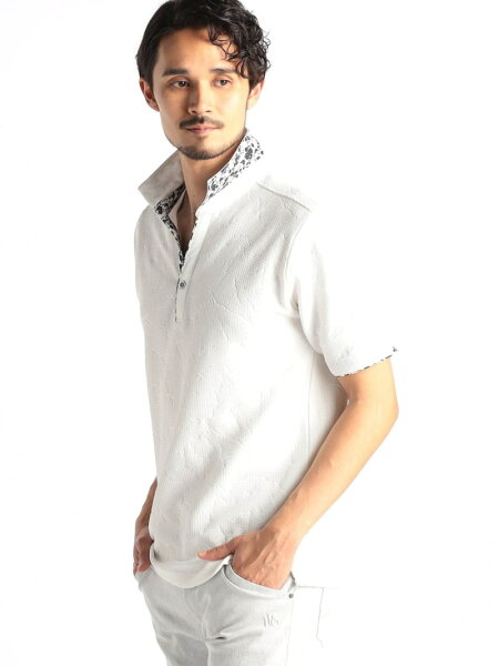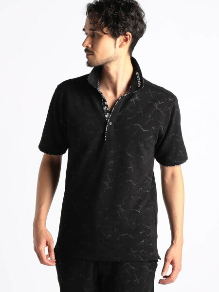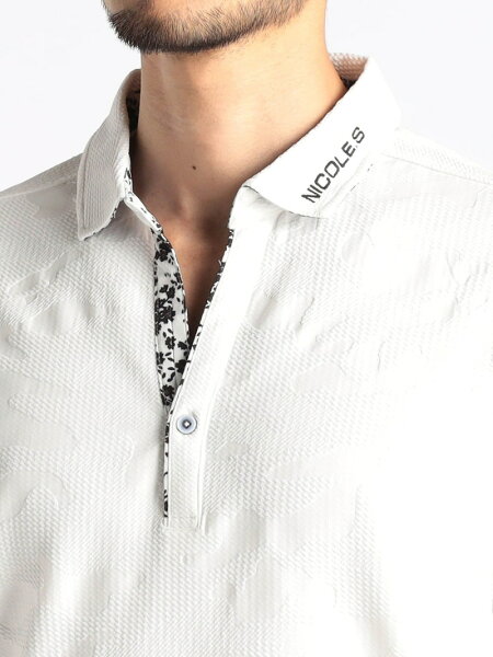 【NICOLE SPORTS】エンボスクラック柄スキッパーポロシャツ NICOLE CLUB FOR MEN ニコル トップス ポロシャツ ブラック ホワイト【送料無料】[Rakuten Fashion]
