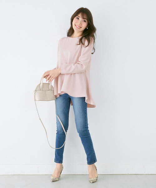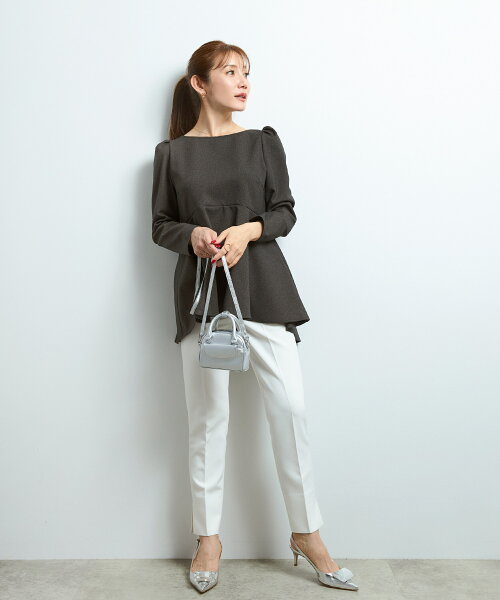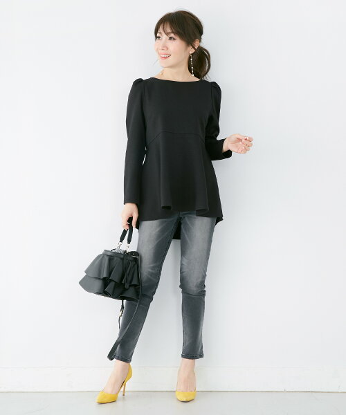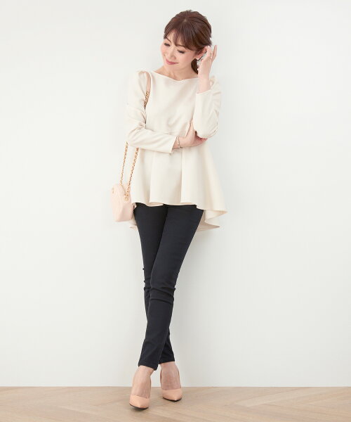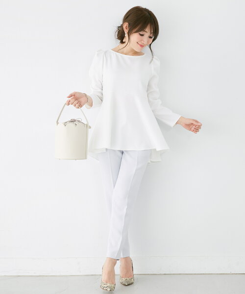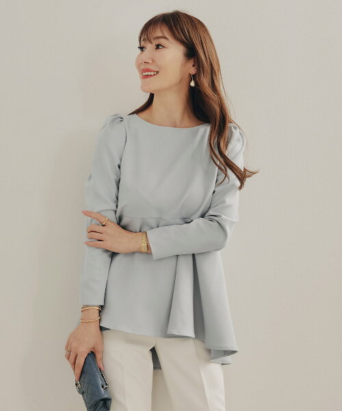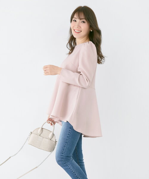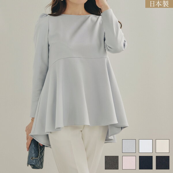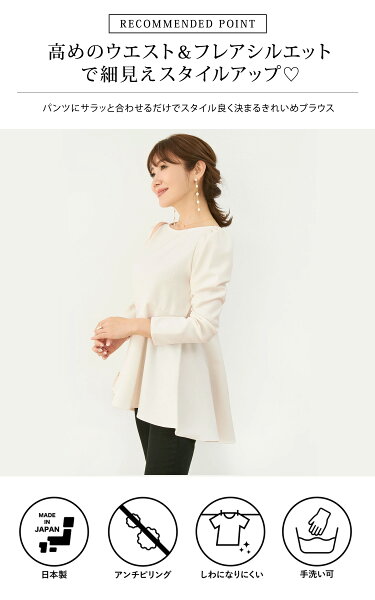 1/中旬~下旬頃発送予定!新色追加 手洗い可 ペプラム オフィス オケージョン シンプル かわいい きれいめ おしゃれ 春 白 黒 アンチピリング 日本製 ジョイントスペース タックスリーブ 9分袖 フレア ブラウス Liala×PG 全7色|lpg811-0986【20】