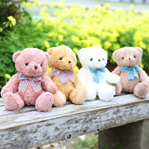 クリスマス プレゼント 女の子 3歳 4歳 5歳 6歳 ぬいぐるみ くま クマ 小さい テディベア リボン プレゼント 誕生日 キッズ 子供 女の子 ふわふわ ギフト お手頃サイズ ベージュ ホワイト ピンク ブラウン Beige White Brown Pink