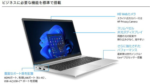 美品 ノ-トパソコン Windows11 pro HP 12世代 Core i5 メモリ 8GB 16GB 高速静音M.2SSD512GB 新品office付き HDMI 15.6インチ probook 450 G9 テンキ- 無線wifi6 webカメラ Bluetooth Win11 中古パソコン PC 2024 DELL NEC dynabook Lenovo 15インチ 1464a