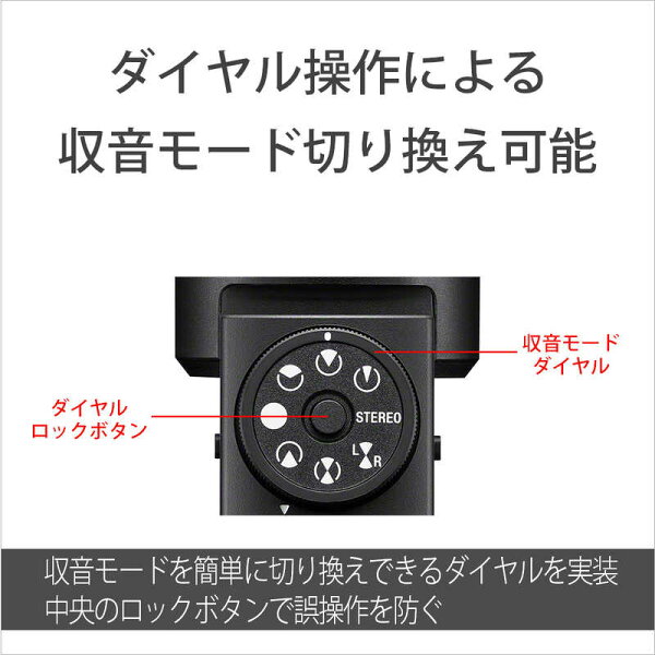 ●8つの収音モードを直感的に切り換え、狙った範囲の音を簡単操作で収音可能世界初(*)の8つの収音モードを搭載し、直感的なダイヤル操作で切り換え可能な、使い勝手のいい小型・高音質マイクです。手元で手軽に切り換えられる「収音モードダイヤル」も搭載しています。