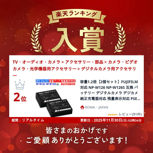 容量1.2倍【2個セット】FUJIFILM対応 NP-W126 NP-W126S 互換 バッテリー デジタルカメラ デジカメ 純正充電器対応 残量表示対応 PSE基準検品 [ランキング受賞]