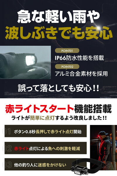 \クーポンで300円OFF/ ※予約販売【ミドルモデル】 SeaBonds 釣り ヘッドライト 1000ルーメン 防水 赤ライト 2600mAh バッテリー 2way SPEC2 充電式 首掛け 釣り 耐久性 首掛け 赤ライト搭載 USB 最大14時間 アルミ合金 IP66 雨 雨対応 防塵 耐久 レッドライト 軽量 耐久性【予約販売(1月下旬から順次お届け予定)】