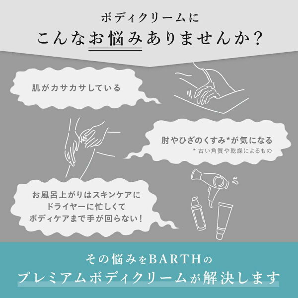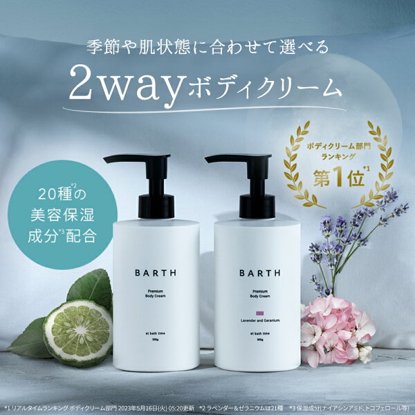BARTH プレミアム ボディクリーム at bath time【公式店】 | 選べる香り ナイアシンアミド ビタミンC 大容量 ボディミルク インバス いい匂い 乾燥 保湿 メンズ レディース 乳液 ポンプ プレゼント ギフト スキンケア
