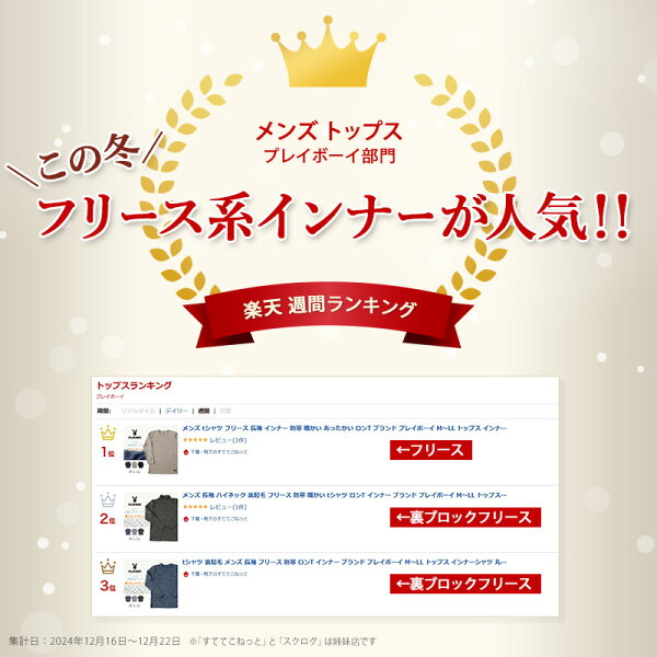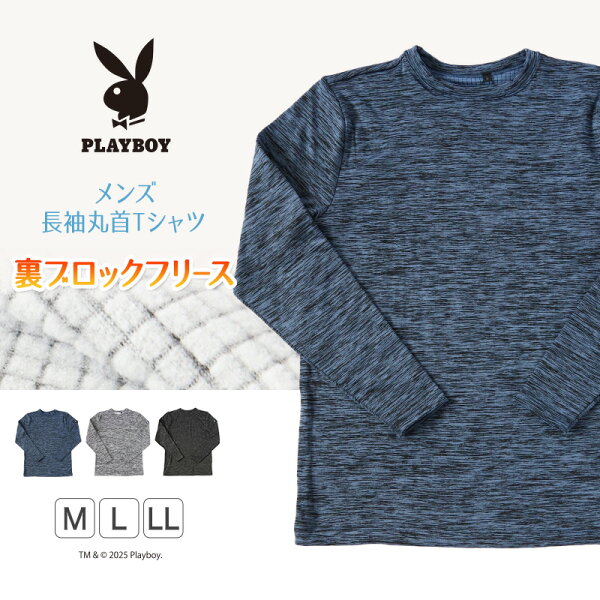 tシャツ 裏起毛 メンズ 長袖 フリース 防寒 ロンT インナー ブランド プレイボーイ M~LL トップス インナーシャツ 丸首 秋 冬 紳士 肌着 男 クルーネック PLAYBOY アンダーウェア