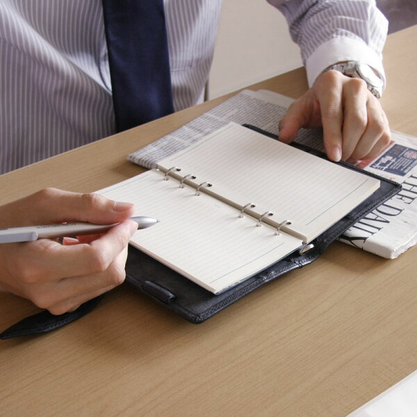 - ビジネス用途でもプライベート用途でも、どなたにでもおすすめできるモデルです。定番のリフィルが一通りセットになっているので、始めてシステム手帳を使う方でも安心してお使いいただけます。カラーバリエーションが豊富なのもポイント。