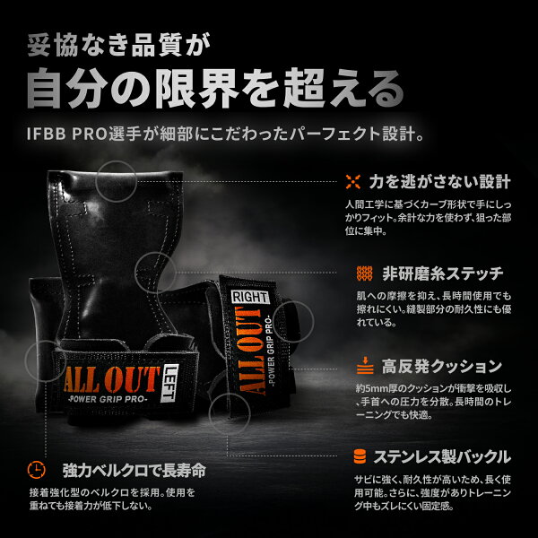 【1/5限定★クーポンで15%OFF】≪公式≫ALL OUT【IFBB PROトップ選手愛用】 オールアウト パワーグリップ 筋トレグローブ トレーニンググローブ パワーグローブ ノンスリップラバー仕様 グローブ 握力補助 手首サポーター
