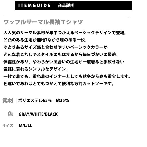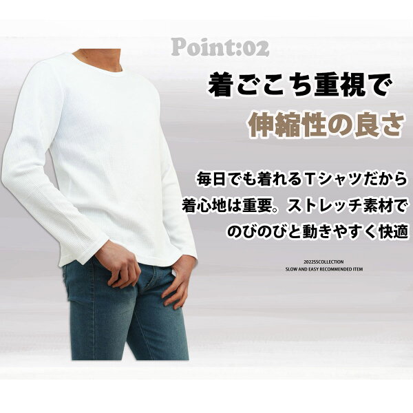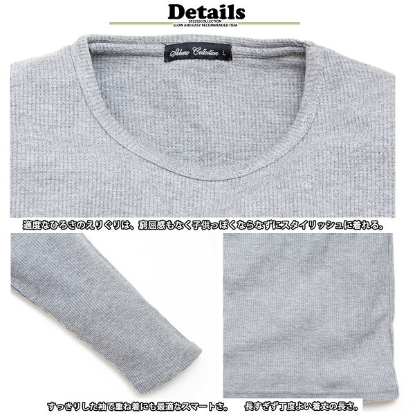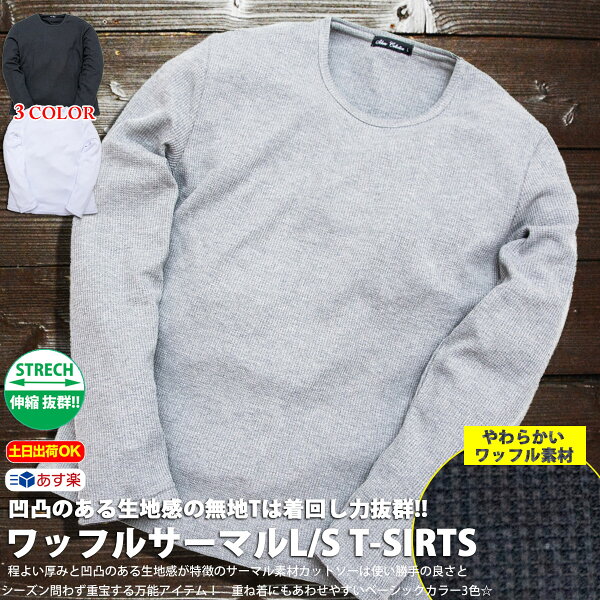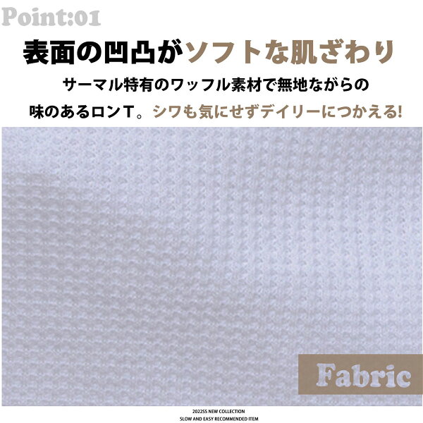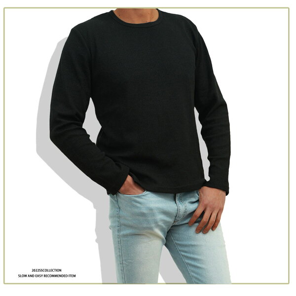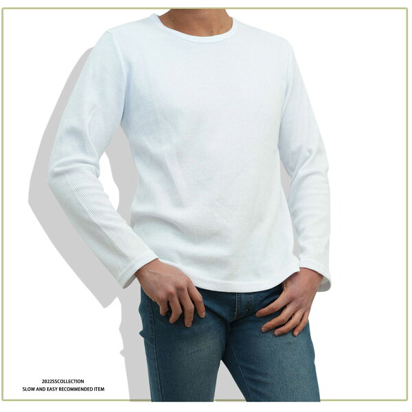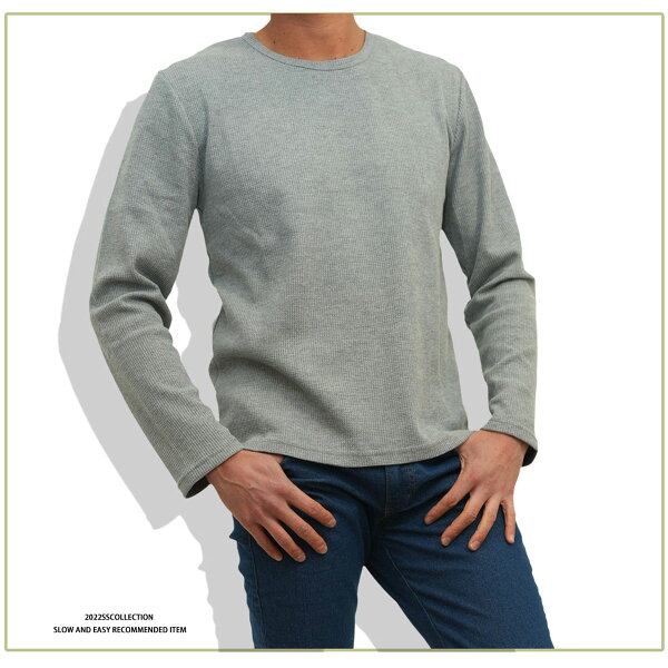 サーマル メンズ 無地 ロンT 長袖 ワッフル Tシャツ シンプル メンズT 無地T カットソー【2万円以上お買い上げで Ron Herman ロンハーマン ミニタオル プレゼント!】涼しい 大人 カジュアル 夏 秋 秋物 ゆったりTシャツ 丸首