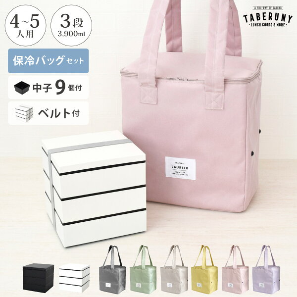 重箱 3段 三段 6寸 おしゃれ 白 保冷バッグ 大容量 折りたたみ 仕切り付き お重 お重箱 スクエア 4人用 5人用 運動会 弁当箱 ホワイト シンプル 人気 日本製 NMnkk [ NO MARK 3段 重箱 ベルト付き & LAURIER 保冷 スクエア デリバッグ 10886/11751]