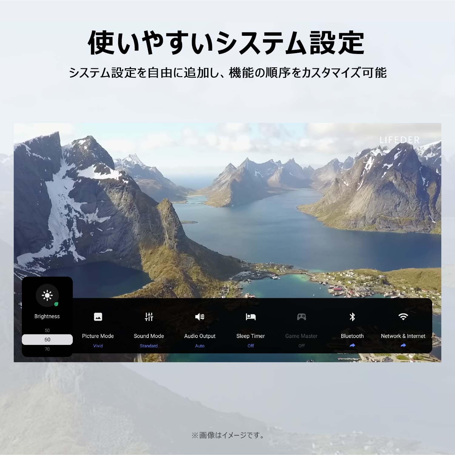 | 特徴: | Airplay2, Chromecast, ゲームモード, ベゼルレスデザイン, 量子ドット |