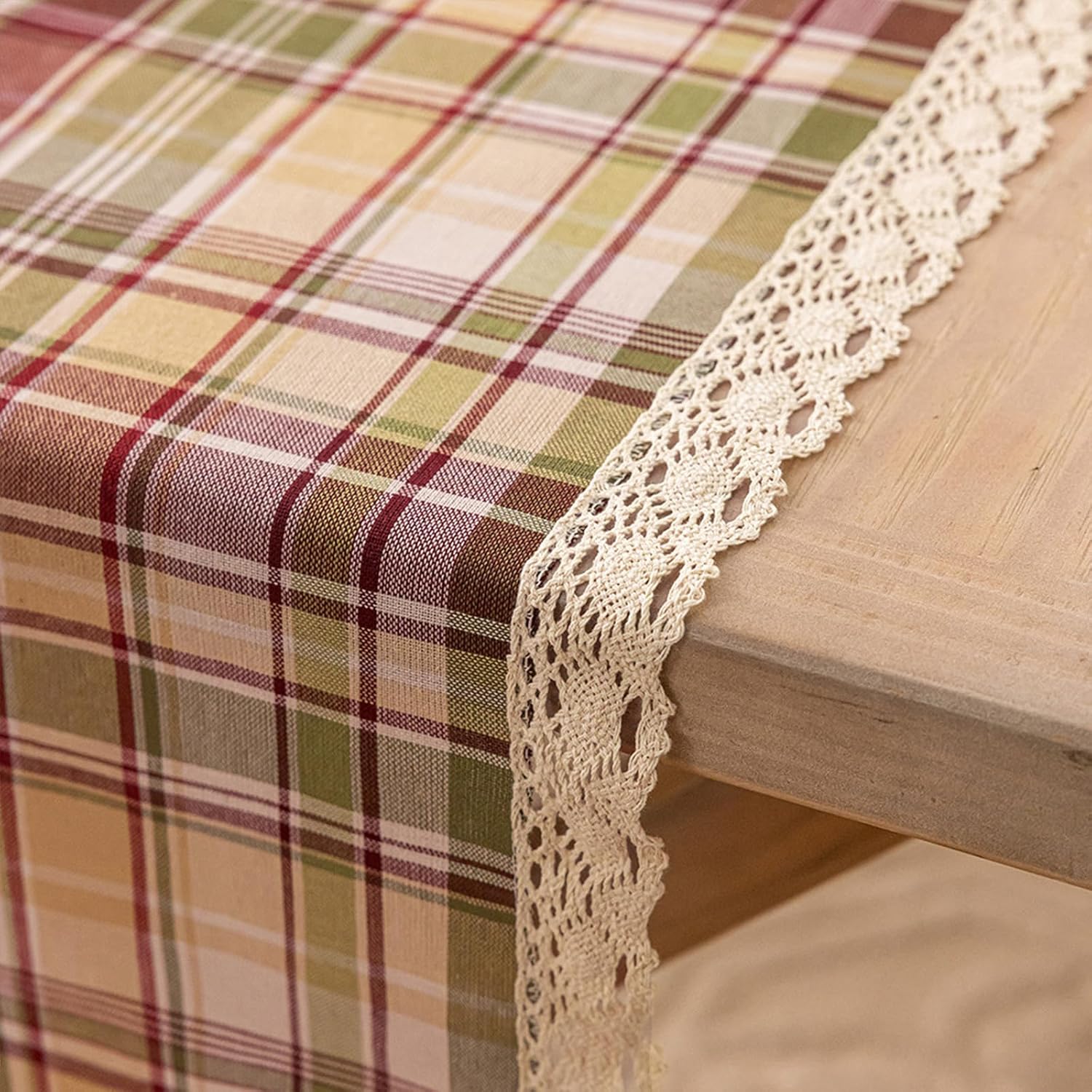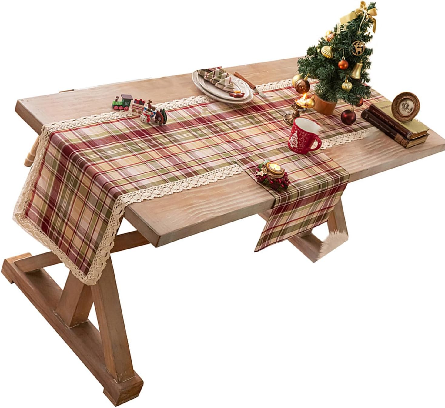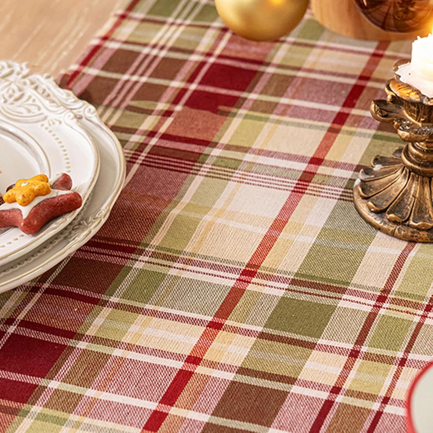 ポリエステル生地で作られたこのクリスマステーブルリネンは、洗濯機で洗える利便性と、アイロンをかけずにシワになりにくいのが特徴です。